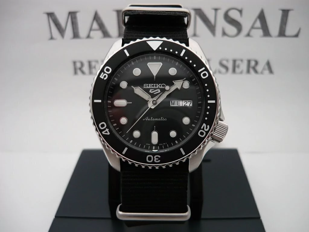 MARTINSAL RELOJESAGENTE OFICIALSHOWROOM EN CAPITAL FEDERALFOTOS REALES DEL RELOJ A LA VENTARELOJES ORIGINALES Y NUEVOS----------------------------------------SEIKO5 SPORT NUEVA SERIESRPD55K3AUTOMATICONUEVO100% ORIGINALPACKAGING OFICIAL SEIKOGARANTIA OFICIAL 1 AÑO SEIKO ARGENTINACaracteristicas del Reloj:Reloj de: HombreMovimiento: Seiko calibre 4R36 24 rubies, mecanico automatico con capacidad de cuerda manual y parada de segunderoReserva de marcha: aproximadamente 41 horasCronografo: NoOtras funciones: NoCuadrante de color: NegroCristal: HardlexCorona: Sin roscaCalendario: Día / FechaAgujas y marcas: Con luminosidadBisel Función: Giratorio unidireccionalTapa trasera: A roscaHermeticidad: Hasta una presion de 10 BarMaterial de la caja: Acero inoxidableMaterial del bisel: Acero inoxidableMaterial de la malla: NylonDiámetro de la caja: 42,5 mm sin coronaDiametro de la caja: 45 mm incluida coronaEspesor de la caja del reloj: 13,4 mmAncho de Asas: 22 mmPeso: 94 Gr.