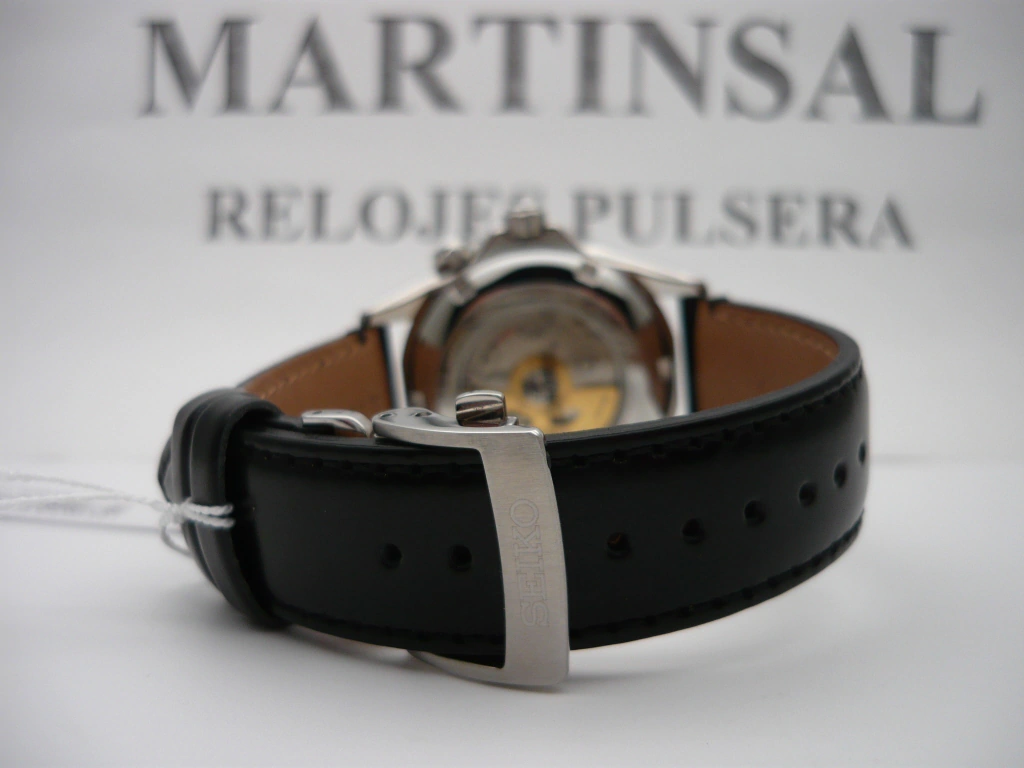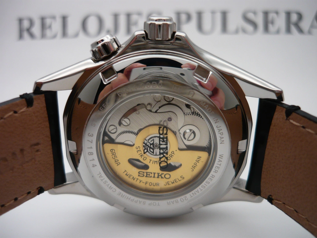 Movimiento: Seiko calibre 6R54 24 Jewels mecanico automático con capacidad de cuerda manual y parada de segundero