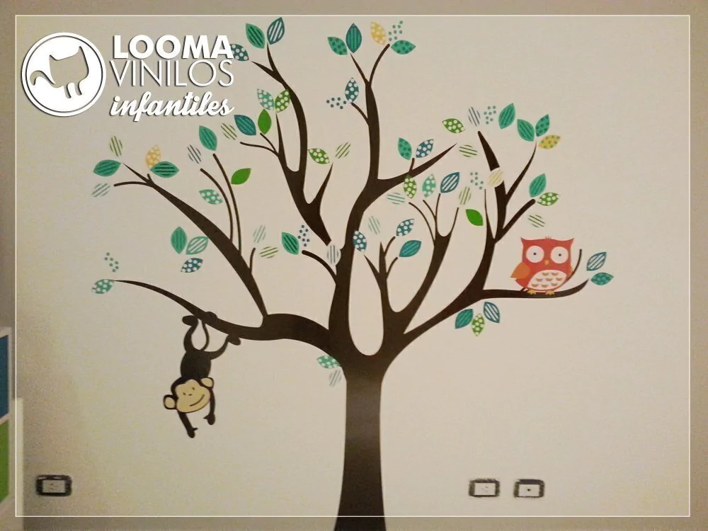 El viniloSelvita incluye:* Árbol marrón de aprox 170 por 170cm de alto (se entrega dividido en partes en dos planchas para cortar y armar sobre la superficie que quieras)* Una plancha con la jirafa y los tres monitos* Una plancha con el león, la cebra y un buhito* Una plancha con hojitas de distintos coloresEl diseño planteado como en nuestra foto ocupa un espacio total de aprox 250 por 220cm. Podés pegarlo así o distribuirlo como más te guste de acuerdo al espacio que tengas.Los vinilos decorativos Looma son ideales para cambiarle la onda a las paredes del dormitorio, cocina, baño o cualquier rincón de tu casa de forma rápida y económica. Su colocación es muy fácil y te permite darle a tu hogar un toque único y original.Si no estás seguro de si pega en una superficie determinada, podés solicitarnos una muestra para probar.Material:Lámina fina de PVC (plástico) importado de primera calidad con adhesivo. El grosor del vinilo es menor a 1mm, lo que hace que parezca que está pintado sobre la pared. Pero también hay que tener en cuenta que, al ser tan finito, toma la forma de la superficie donde se pegan.Limpieza:Se pueden limpiar con un trapo húmedo con detergente o jabón blanco, no utilizar solventes, cloro, alcohol o productos abrasivos.No adhieren sobre:Pintura ultra lavable o Epoxi ni sobre superficies porosas, pastina o cerámicos encerados. Tampoco sobre paredes con humedad, descascaradas o texturadas. Sobre paredes recién pintadas, recomendamos esperar entre 10 a 15 días antes de colocar los vinilos.Colocación:Cada pedido incluye un instructivo de colocación paso a paso. Se pueden pegar sobre casi cualquier superficie mientras que la misma sea lisa, esté limpia, libre de polvo y sin humedad. Son resistentes al calor de la cocina, pero se dañan si se exponen a llama directa. Se pueden mojar, son resistentes al vapor y al agua.Tiempo de Producción:Todos los pedidos los realizamos exclusivamente para cada cliente de acuerdo a la medida y diseño elegido. El tiempo estimado de producción para tenerlos listos en nuestro taller es entre 3 a 6 días hábiles, que se deben sumar al tiempo de envío en caso de elegir mensajería low cost o el servicio de Correo.Variaciones de Color:Las imágenes y los colores de las fotos de nuestra tienda online pueden variar de los tonos reales del vinilo. Las fotos son ilustrativas y los diseños impresos pueden tener una leve diferencia con las mismas. Por esto, te recomendamos que si no estás convencido del color, antes de comprar, nos solicites una muestra. Los pedidos impresos en distintos días pueden tener variaciones de color debido a que corresponden a distintas tandas de impresión. Sólo podemos asegurar el mismo color en las partidas que se imprimen juntas. Ante la duda, siempre calcula un poquito de más.Para tener en cuentaEl enrollado de los vinilos para embalarlos en los tubos puede generar algunas arrugas en el papel transfer que sirve para facilitar su colocación. Cuando recibas tu paquete, te recomendamos extender los vinilos sobre una superficie lisa y, en el caso de que lleven papel transfer, presionar de nuevo con una espátula o similar antes de su aplicación. El vinilo es un material flexible y por ello cualquier arruga que afecta al papel no tiene efecto sobre el vinilo una vez realizada la aplicación correctamente.