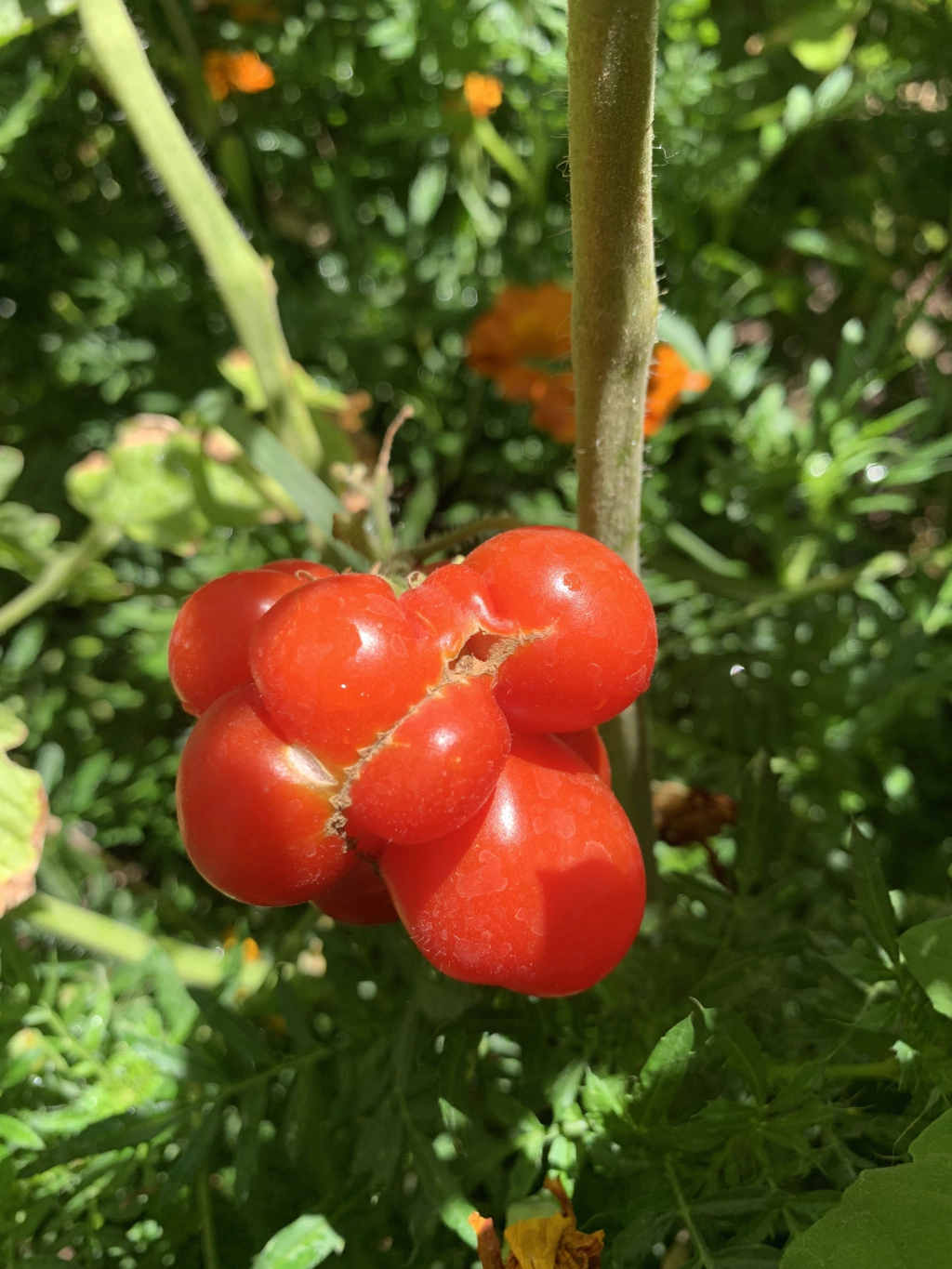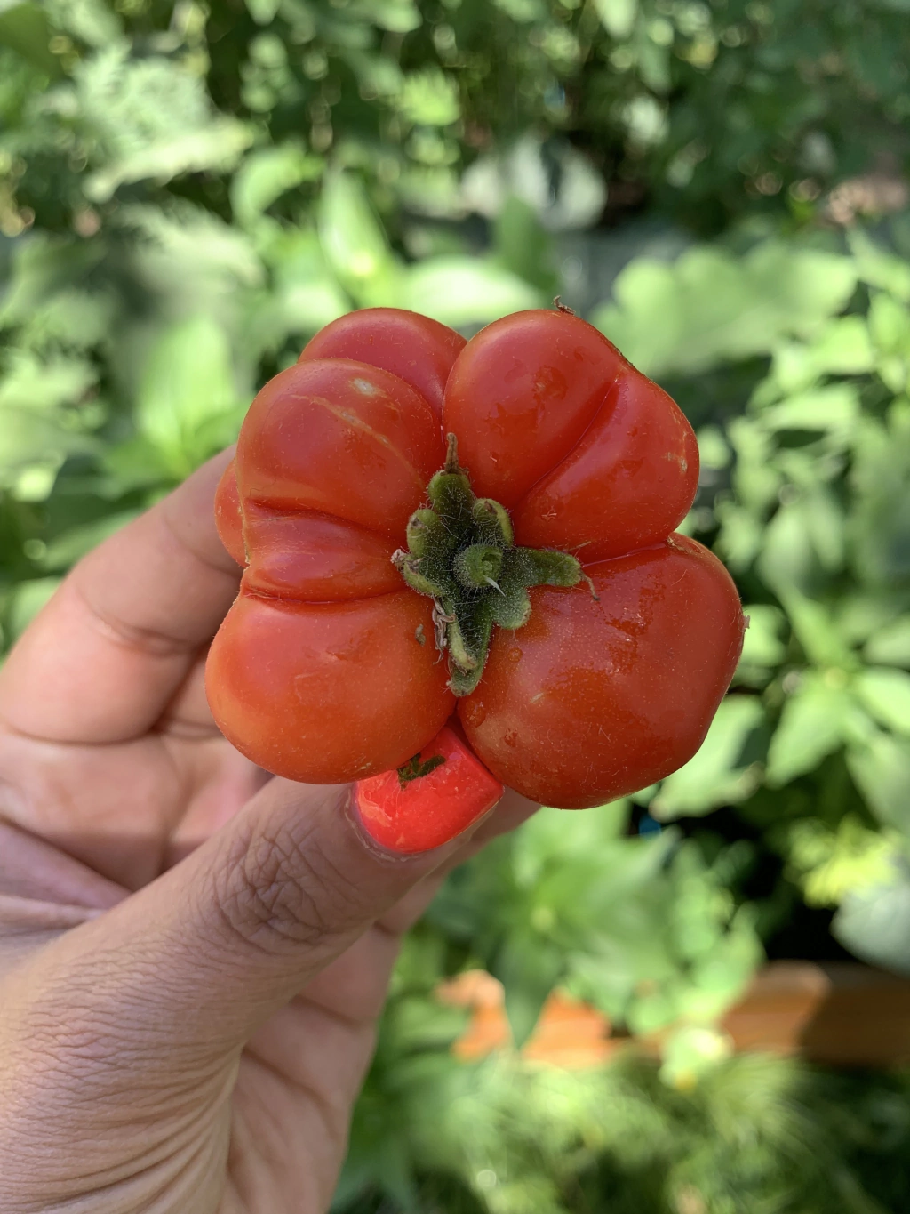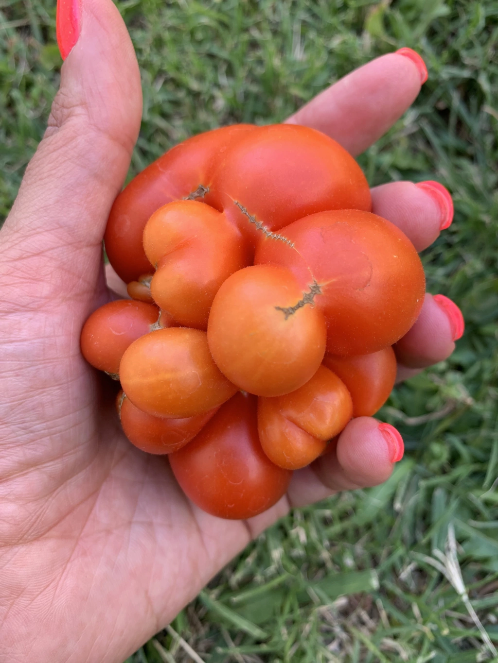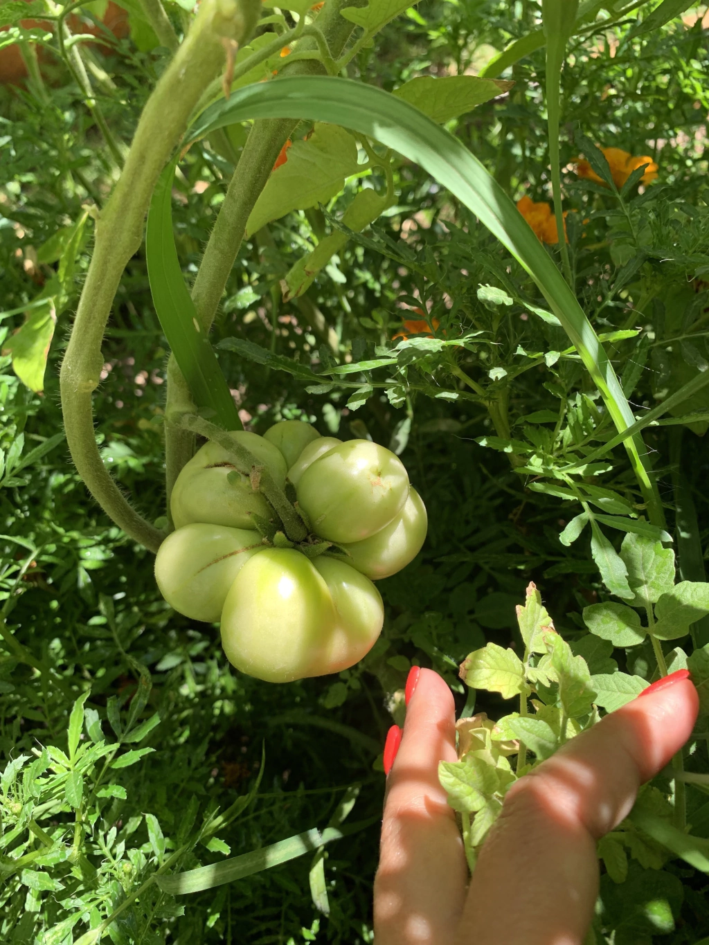 Forma y Características: Este tomate se destaca por su forma “rara” y su estructura de múltiples cámaras, similar a una mandarina. Los frutos son rojos, grumosos y hermosos, con un peso aproximado de 120 gramos. Esta estructura permite sacar las cámaras individuales sin derramar jugo, haciendo que sea ideal para llevar contigo.