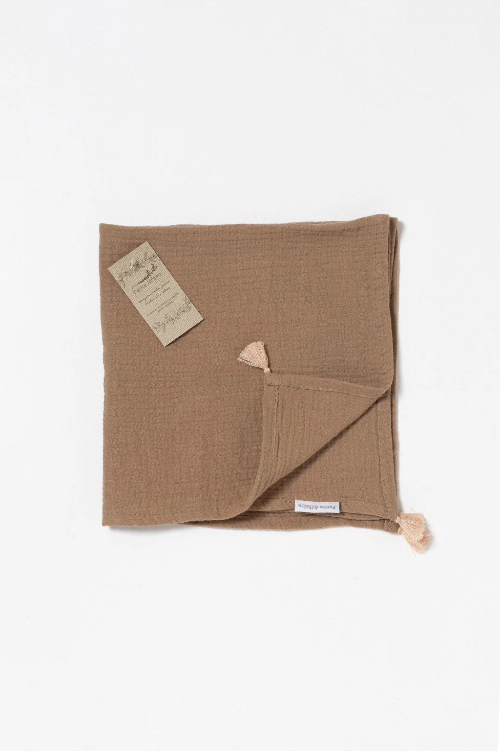 Servilleta 100% algodón muy suave al tacto, teñida en color Cacao. La misma tiene terminacioes en los extremos de flecos en color rosa que le aportan carácter a la hora de armar una mesa. Se pueden combinar con Runner Holly Print y Pack Papel de la misma familia.Medida: 48 x 48 cm