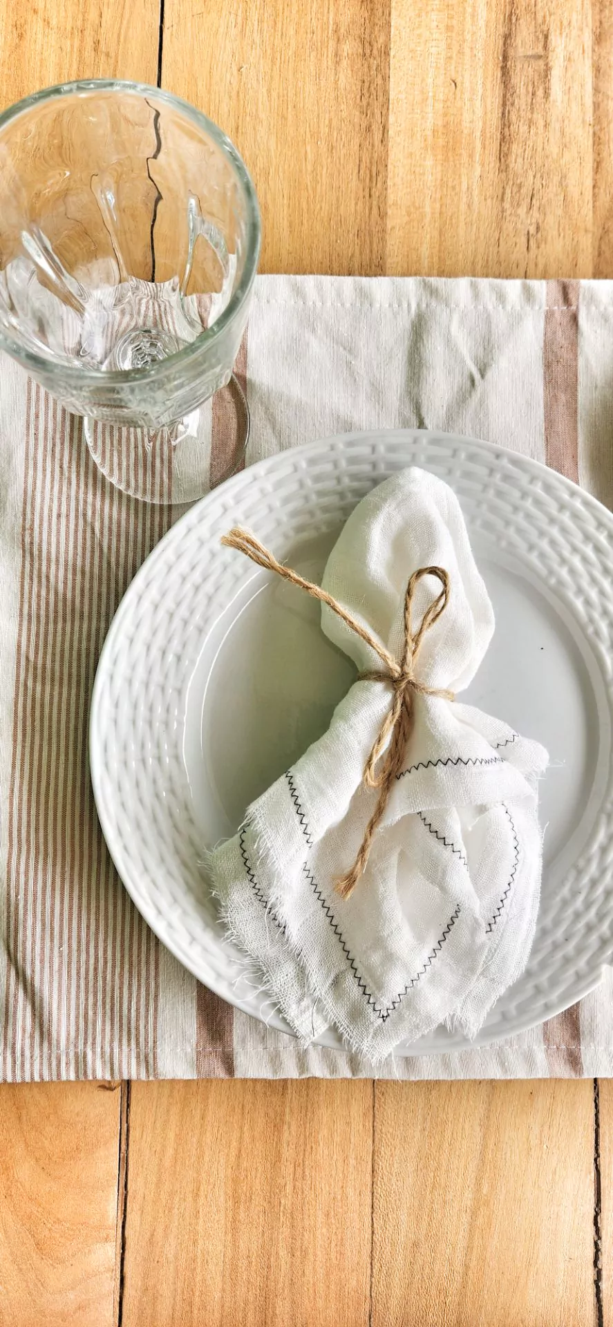 Servilleta de Gasa con costuras en negro y bordes desflecados