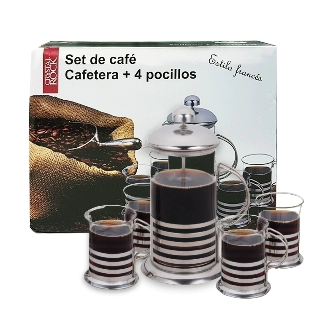 SET DE CAFETERA CON EMBOLO + 4 TAZAS