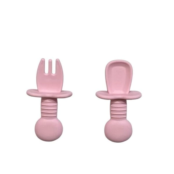 Set mini diseñado para manos pequeñas, la cuchara y el tenedor de silicona ergonómicos ayudan al bebé en las primeras etapas, para aprender a manipular y controlar los cubiertos de manera segura!
