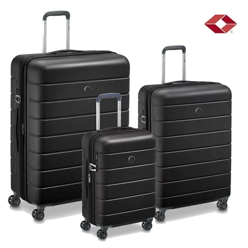 - Material: Material ABS / Policarbonato- Marca: Delsey- Origen: ChinaSet de 3 Valijas rigidas color negro.Compuesto x:- 1 Valija Grande 116lts 75 x 53 x 29 cm.- 1 Valija Mediana 80lts 66 x 47 x 26 cm.- 1 Valija Carry On 44lts 55 x 35 x 23 cm.Se puede llevar en cabina. Sus dimensiones son conformes con la mayoría de las restricciones de cabina de las compañías aéreas.- 4 Ruedas dobles multidireccionales que garantizan una manejabilidad excepcional y permiten reducir la carga sobre el brazo.- Ruedas con Giro 360° que Aseguran una maniobrabilidad excepcional y mantienen el peso del brazo cero.- Ruedas Silenciosas garantizando el máximo confort auditivo en los desplazamientos.- Totalmente forrada en interior- 1 compartimento lateral de malla con cremallera- Manijas superiores y laterales en todos los tamaños.- Correas de sujeción en ambos compartimentos- 1 Bolsillo interior- Material muy resistente con terminación anti rayones- Candado empotrado con combinacion TSA que le permite a las autoridades de países específicos como Estados Unidos revisar su maleta sin dañarla.Zip Securi TechSistema exclusivo de cierre del equipaje, 41 veces más resistente que un cierre tradicional para maximizar el nivel de seguridad y para evitar riesgos de robo por la apertura de la cremallera.Garantía MundialToda pieza de equipaje DELSEY cuenta con una garantía contra cualquier defecto de fabricación durante el periodo indicado en el certificado de garantía.