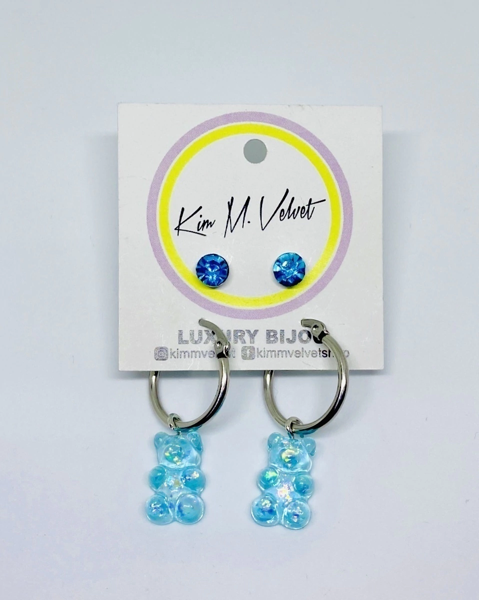 Set de aritos de acero compuesto por un par de chispitas más un par de argollas con ositos.