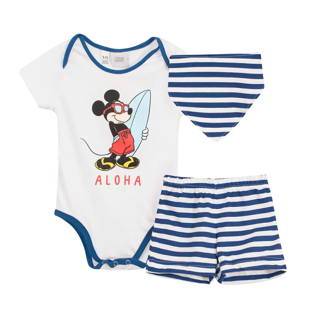 Set de Bebé Mickey - Algodón 100%¡Descubre el encantadorSet de Bebé Mickey! Este conjunto incluye un body con babero, pañuelito y short, perfecto para que tu pequeño luzca adorable mientras disfruta de la comodidad.Comodidad y CalidadConfeccionado en100% algodón, garantiza suavidad y confort para la delicada piel de tu bebé.Talles DisponiblesDisponible en talles: 0 a 3 meses, 3 a 6 meses, 6 a 9 meses, 9 a 12 meses y 12 a 18 meses.¡No esperes más para hacer feliz a tu bebé con este set de Disney!