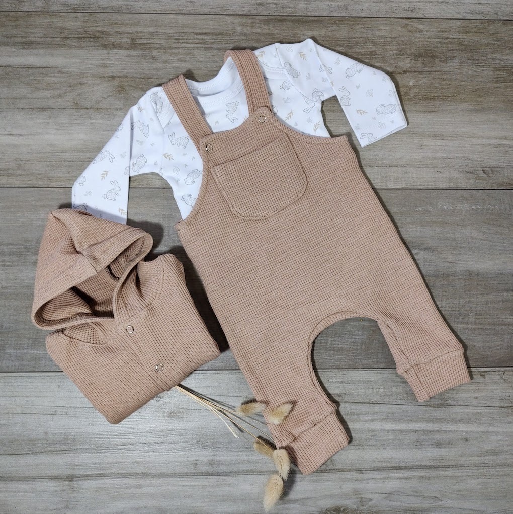 SET DE CAMPERA Y JARDINERO WAFFYDescubrí el conjunto ideal para los más divertidos paseos.Estesetincluyeunacampera con capuchaunjardinero largo con bolsillo delantero, perfectos para cualquier aventura.Se puede combinar fácilmente con nuestrosbodys estampados y lisos.Disponible en tres talles (0 a 3 meses, 3 a 6 meses y 6 a 9 meses) y en cuatro colores: verde oliva, dulce de leche, avellana y terracota.Recomendacionesdelavado: - Utilizaragua fría-Lavardel ladodel revés-Noutilizar blanqueadores -No plancharsobre lasetiquetasHecho en Argentina¡Seguinos en IG!Todos nuestros productos están confeccionados con telas de la más alta calidad, detalles de terminación y diseño, para que sean perfectos como tu bebé lo merece.HECHO CON AMOR PARA TU BEBÉ