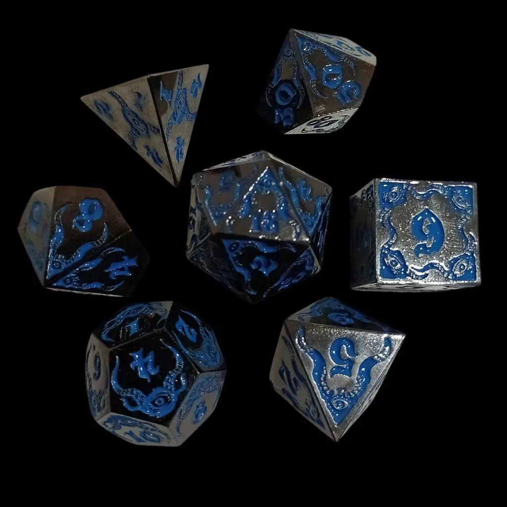 Set de Dados Metálicos Estilo Cthulhu en Negro y Azul