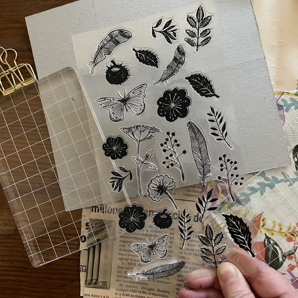 SET DE SELLOS DE SILICONAModo de empleo: Despega el sello del acetato. Colócalo sobre el bloque acrílico y entíntalo. Comprueba la posición en la que deseas estamparlo y estampa con firmeza sobre tu proyecto. Limpia el sello utilizado con una toallita o con agua y jabón, y volve a posicionarlo en el acetato del paquete. Guarda los sellos lejos de la luz y las altas temperaturas.Alguna tintas pueden colorear el sello, pero esto no afecta a la calidad ni a las cualidades del mismo.Las fotos son ambientadas. Las medidas son aproximadas. Aunque no usamos filtros, los colores pueden variar según la calibración de cada monitor.
