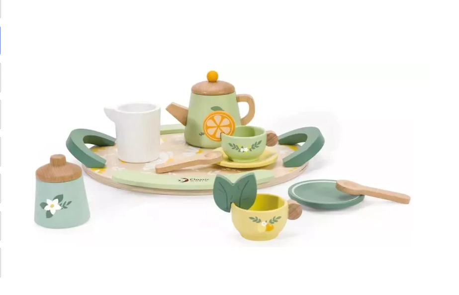 Precioso set de té de estilo vintage para que tu hijo/a prepare una divertida fiesta del té.Incluye una tetera, dos sabores de té (menta y naranja), cucharilla, recipiente para la leche y para el té, así como dos juegos de taza y platos.El asa de la bandeja facilita poder llevarla cómodamente a cualquier lado para seguir jugando.Ideal para el juego simólico o de imitación y el desarrollo del lenguaje.Un poco más abajo puedes ver un vídeo de este bonito juguete de madera de estilo vintage.