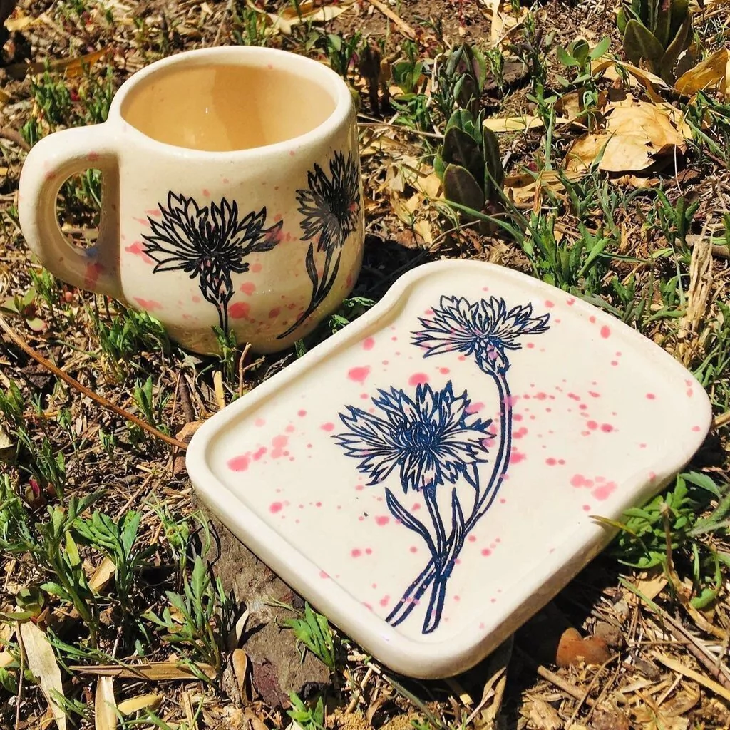 Cerámica esmaltada y pintada a mano, apta para microondas.