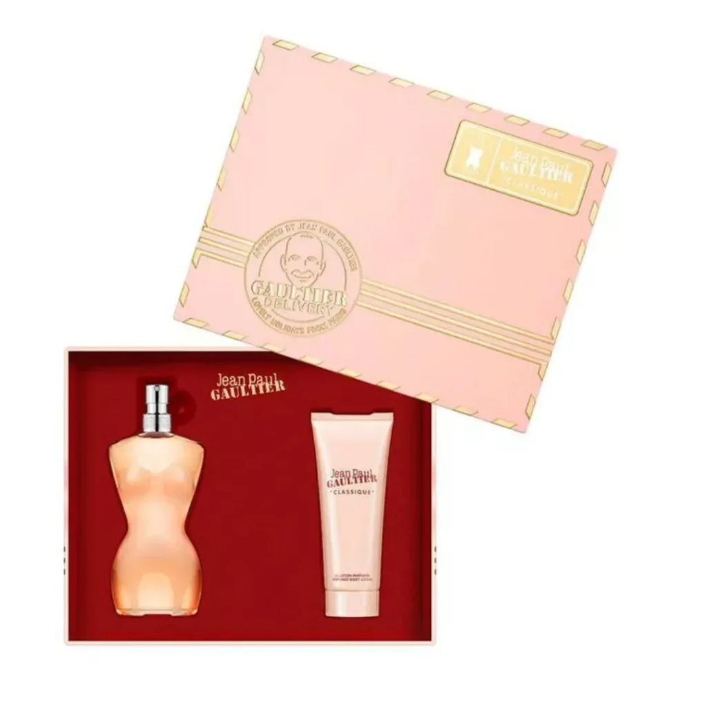 SET JPG CLASSIQUE EDT 100 ML + BODY LOTION 7.5 ML es una propuesta irresistible de sofisticación y sensualidad, ideal para la mujer moderna que desea dejar una huella inolvidable. Este set combina la fragancia emblemática Classique Eau de Toilette con una loción corporal que complementa y prolonga su aroma exquisito.