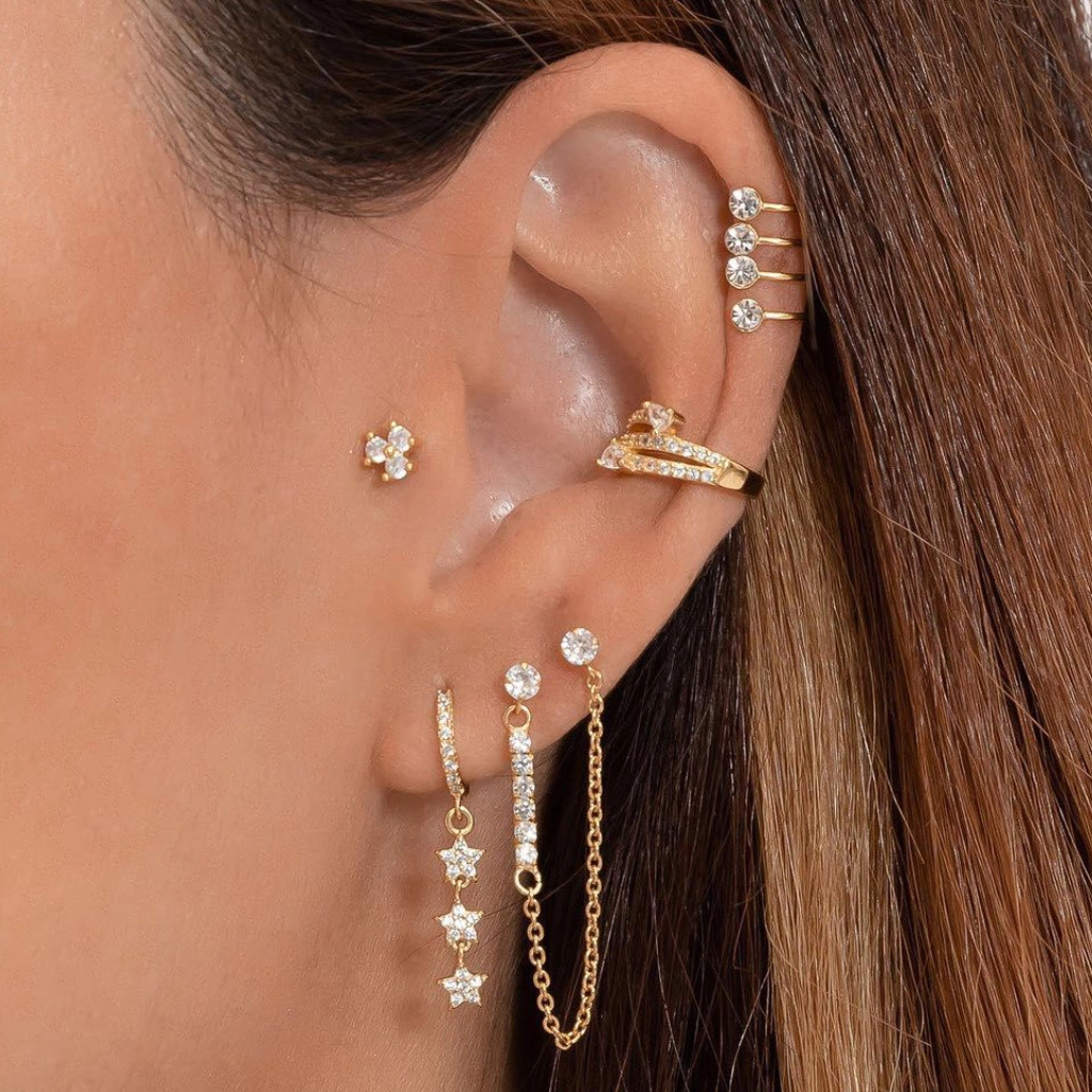 Set de cinco (5) aros.Color disponible: DoradoMateriales: Cobre con baño en oro 18K.