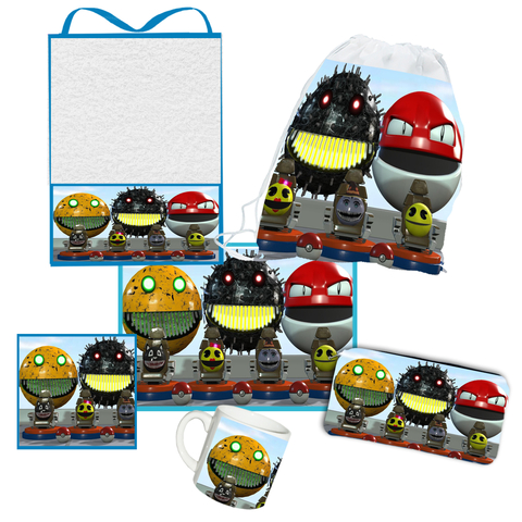 Incluye: Toalla con tira 20x30cm + Individual 20x30cm + Servilleta 20x20cm + Taza plástica + Cartuchera + Mochila de Tela de 20x30 cm