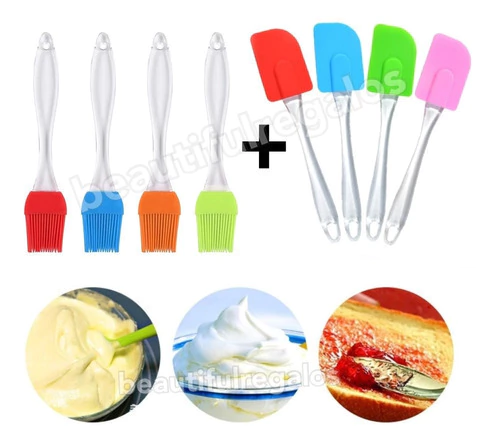 Medidas: Espatula:23,5 x 5,2cm Pincel: 21 x 5cm El precio corresponde a 1 espatula y 1 pincel de silicona con mango de acrilico. ç (se envia en color surtido dependiendo stock)