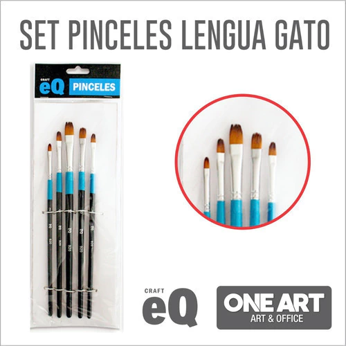 Set Pinceles EQ Acrilico Acuarela x 5 Mixto Lengua Gato