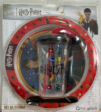 SET PLATO VASO Y CUCHARAHARRY POTTEREl set incluye:1 plato playo1 vaso con tapa y pico1 cucharaMedidas:Plato: 24 cm de diametroVaso: 17 cm de alto x 9 cm de diametroCuchara: 13 cm de largoTemperatura de uso recomendada: 20 a 80°- Material: Plástico- Producto no toxico Libre de BPA- Marca: Bel Gioco