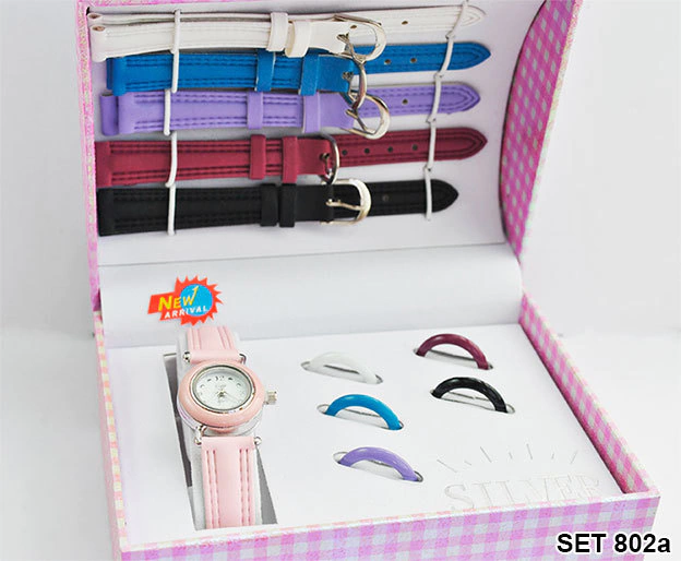 SET SILVER CON FORMA DE COFRE.INCLUYE RELOJ TIPO BIJU, CINCO MALLAS Y AROS INTERCAMBIABLES. ESTUCHE EN VARIOS ESTILOS14