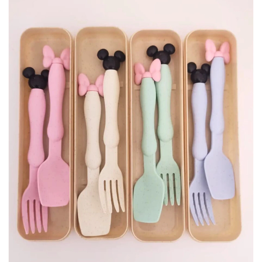 Set Tenedor y Cuchara Minnie y MickeySet de cubiertos libres de BPA, PVC, plomo, ftalatos y cualquier material tóxico.Ideal para acompañar y entrenar en las primeras comidas de tu peque!Medidas Aproximadas: 20 x 5,5 x 3 cmMaterial: Fibra de Trigo.Viene con un estuche super práctico para llevar a todos lados!ORmaternity.