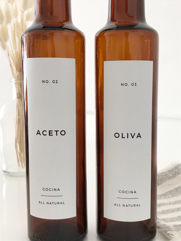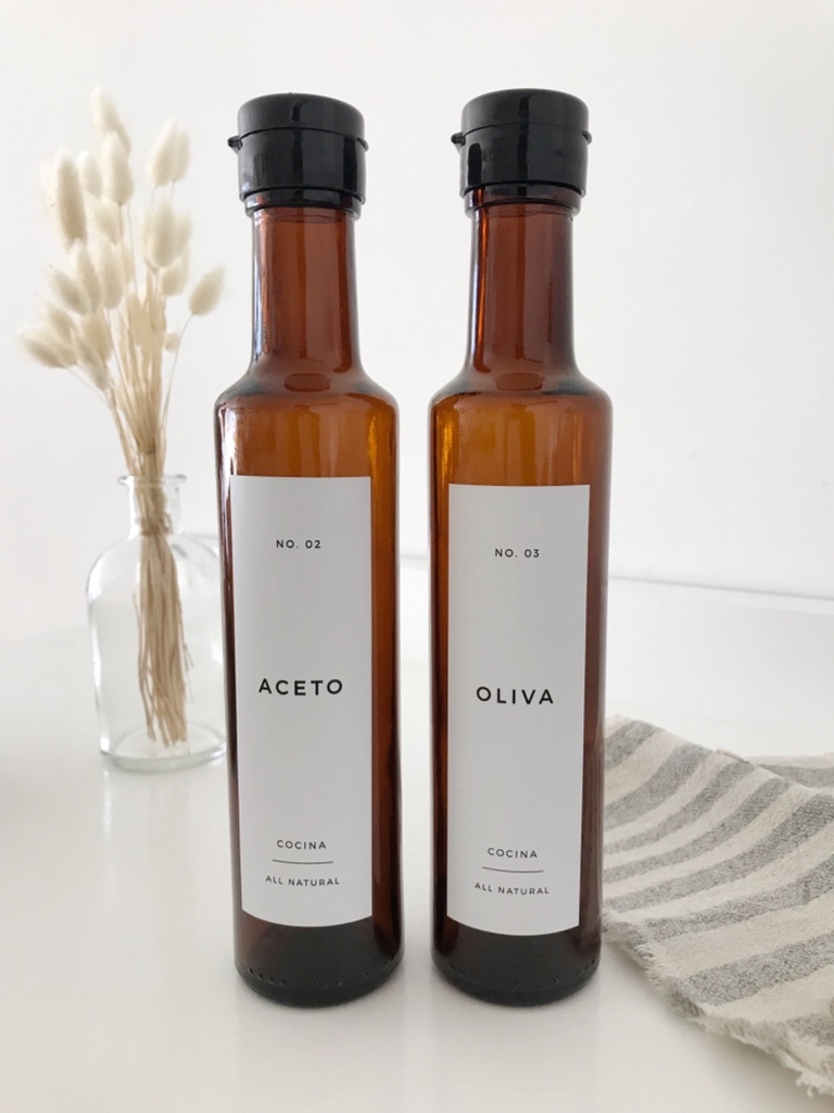 Set x 2 botellitas de vidrio ACETO y OLIVA. Con tapa vertedora.