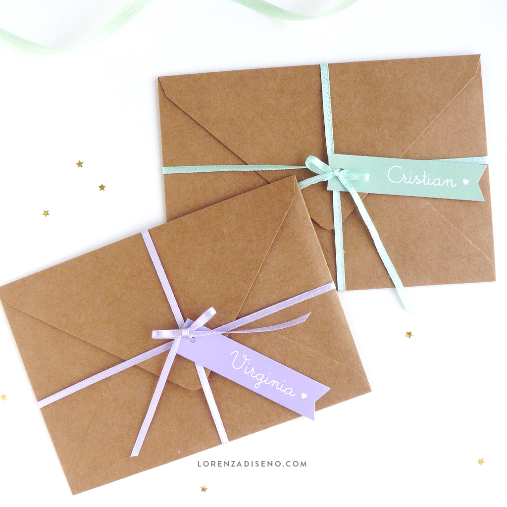 INCLUYE 2 SETS PARA MADRINA Y PADRINO de: Tarjeton tamaño 10x15 CM, en papel 300 grs.+ sobre en papel kraft con la solapa forrada + tarjetita con pregunta “queres ser mi padrino / madrina” (o frase) +