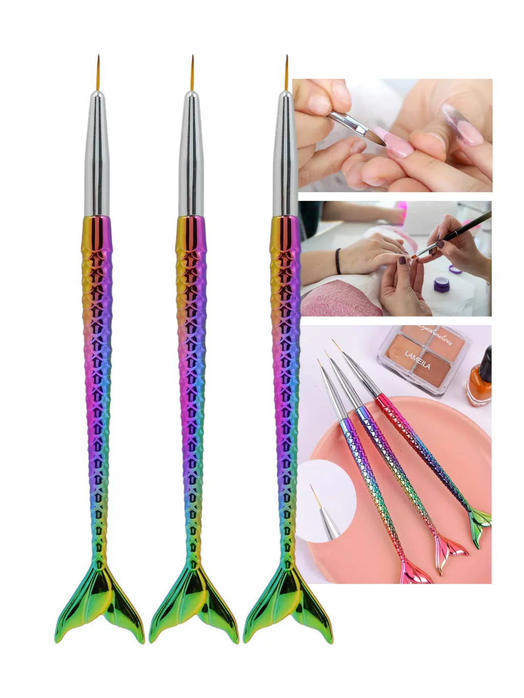 Set x 3 Pinceles Liner Sirena para Decoración de Uñas