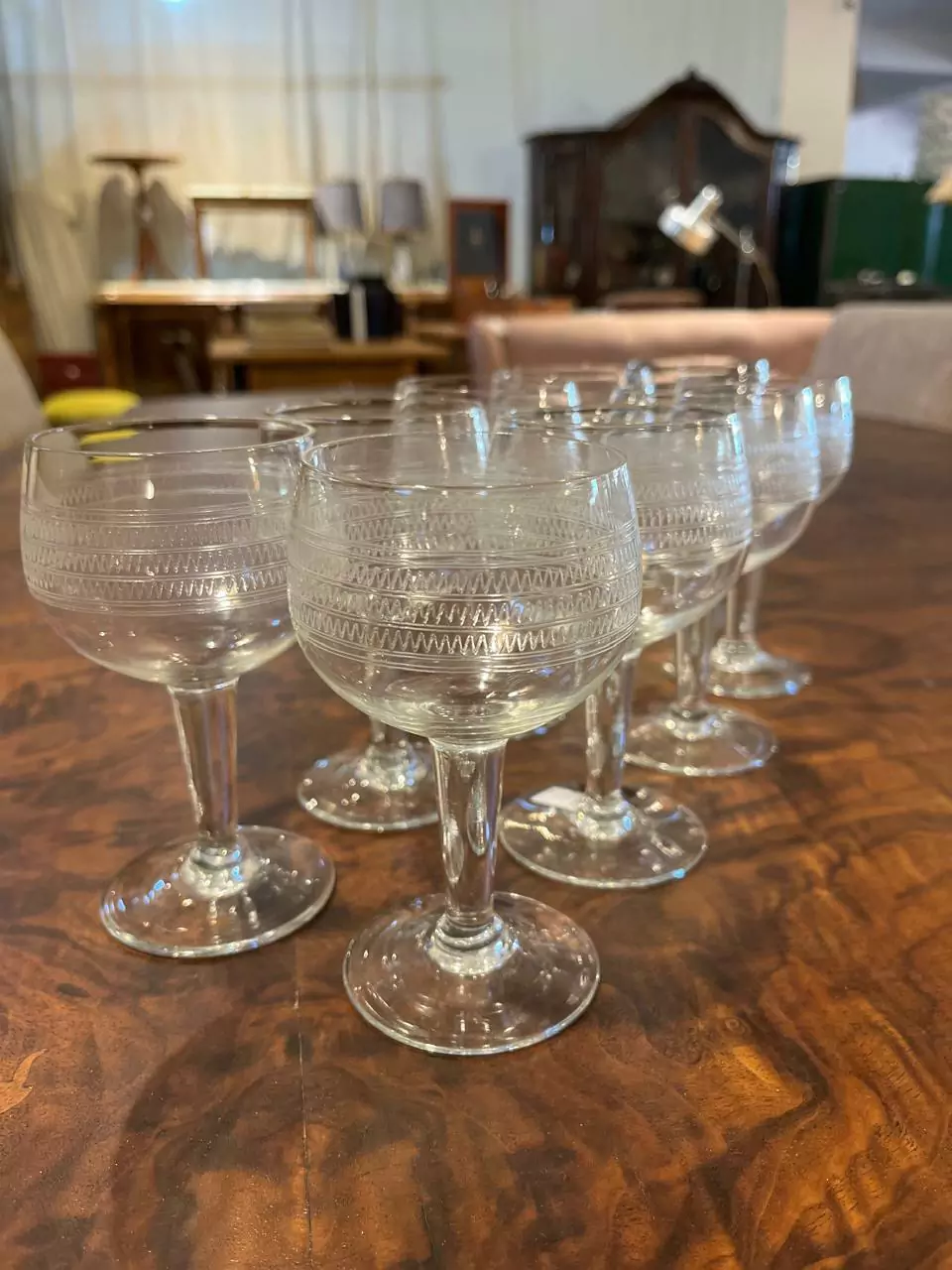 set x 9 copas vidrio tallado, antiguoEste artículo es de época, por lo que es posible que presente signos de desgaste o uso debido al paso del tiempo. Los invitamos cordialmente a visitar nuestro local para ver los productos personalmente.Embalaje costo adicional 5%