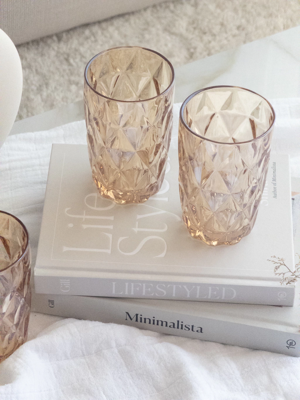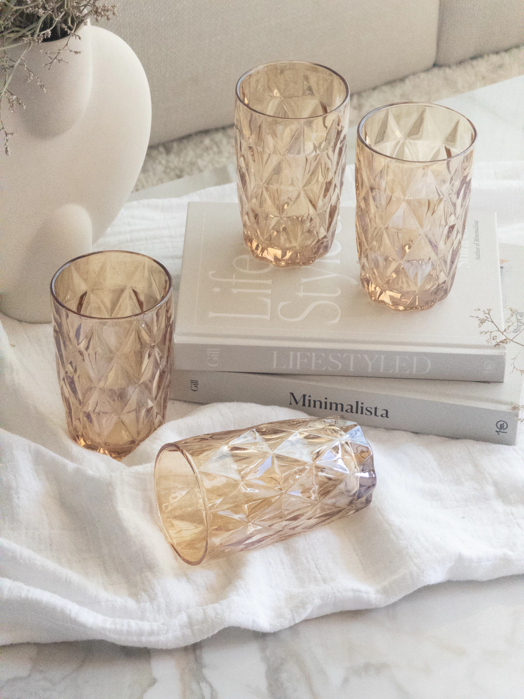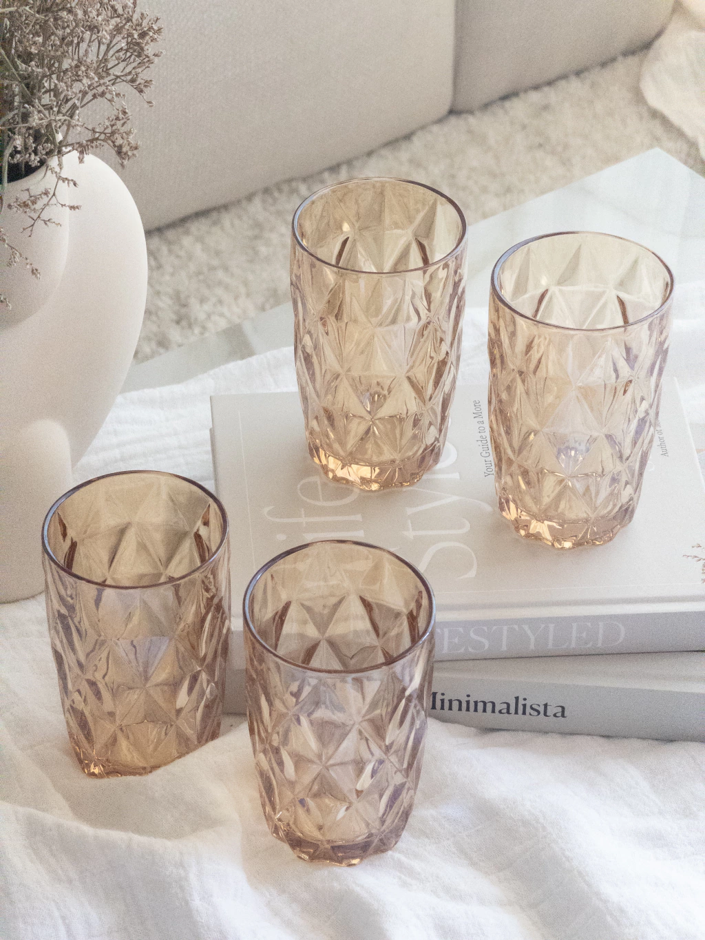 Set de vasos de color ámbar, son perfectos para realzar cualquier ocasión especial, ofreciendo un diseño sofisticado. Cada pieza está elaborada en vidrio de alta calidad, garantizando resistencia y durabilidad.