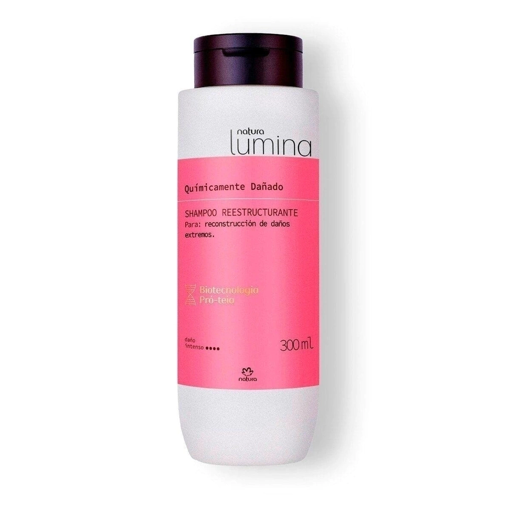 Shampoo Reestructurante para cabellos químicamente dañados. Reconstrucción con daños extremos por procesos químicos como alisado o coloración. Cabello que presenta puntas abiertas y está quebradizo por pérdida de masa capilar a lo largo de los procesos químicos. Necesita reconstrucción de daños intensos, resistencia y fuerza. Cabello tratado, reconstruido y saludable desde la primera aplicación.