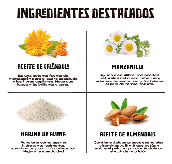 El aceite de caléndula es una potente fuente de hidratación. Contiene manzanilla que ayuda a equilibrar los aceites naturales del cuero cabelludo y harina de Avena que funciona como agente hidratante, calmante y suavizante.