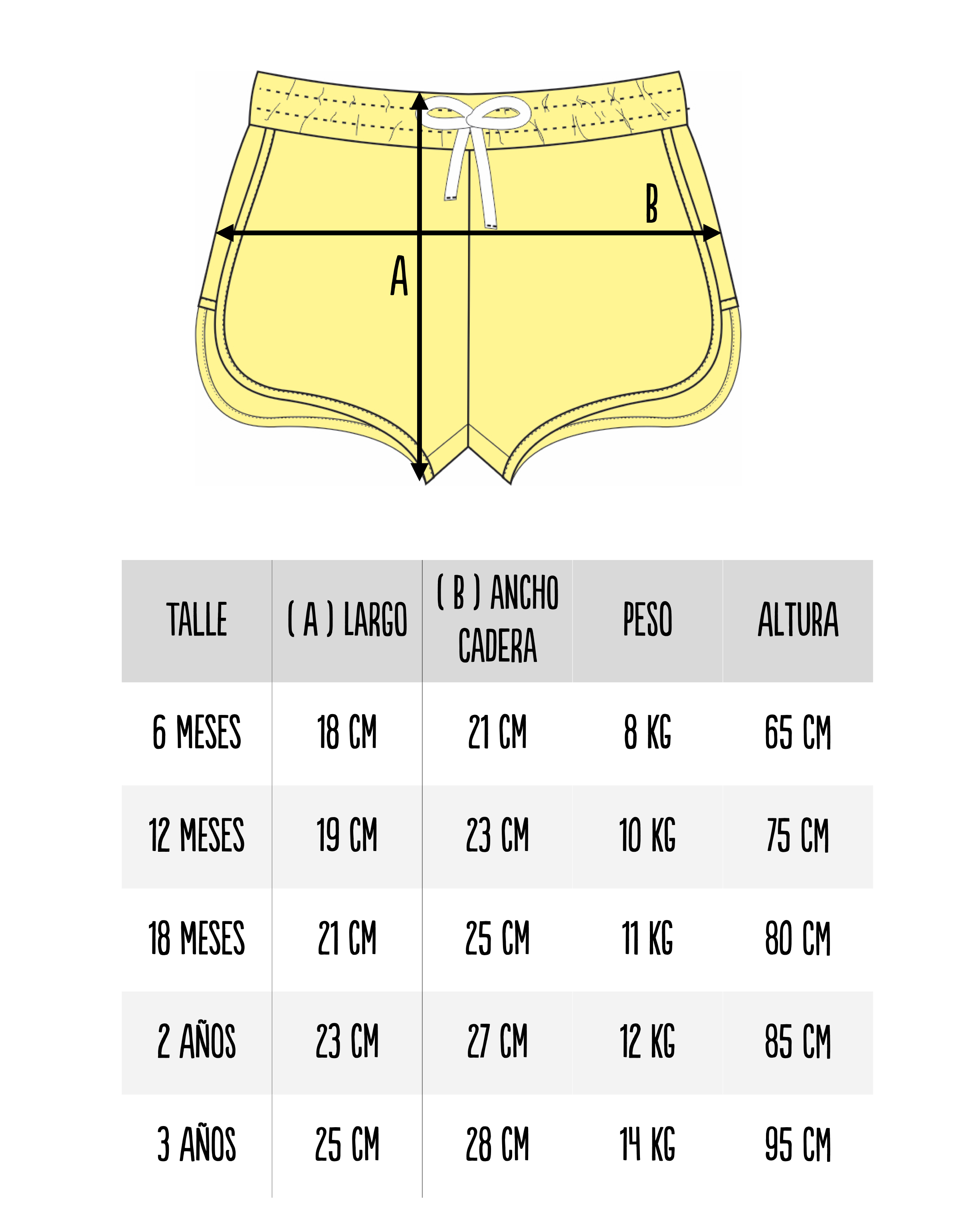 Para elegir el mejor talle te sugerimos chequear las medidas en la siguiente tabla, y ante la duda elegir el talle más grande. ¡Crecen tan rápido!