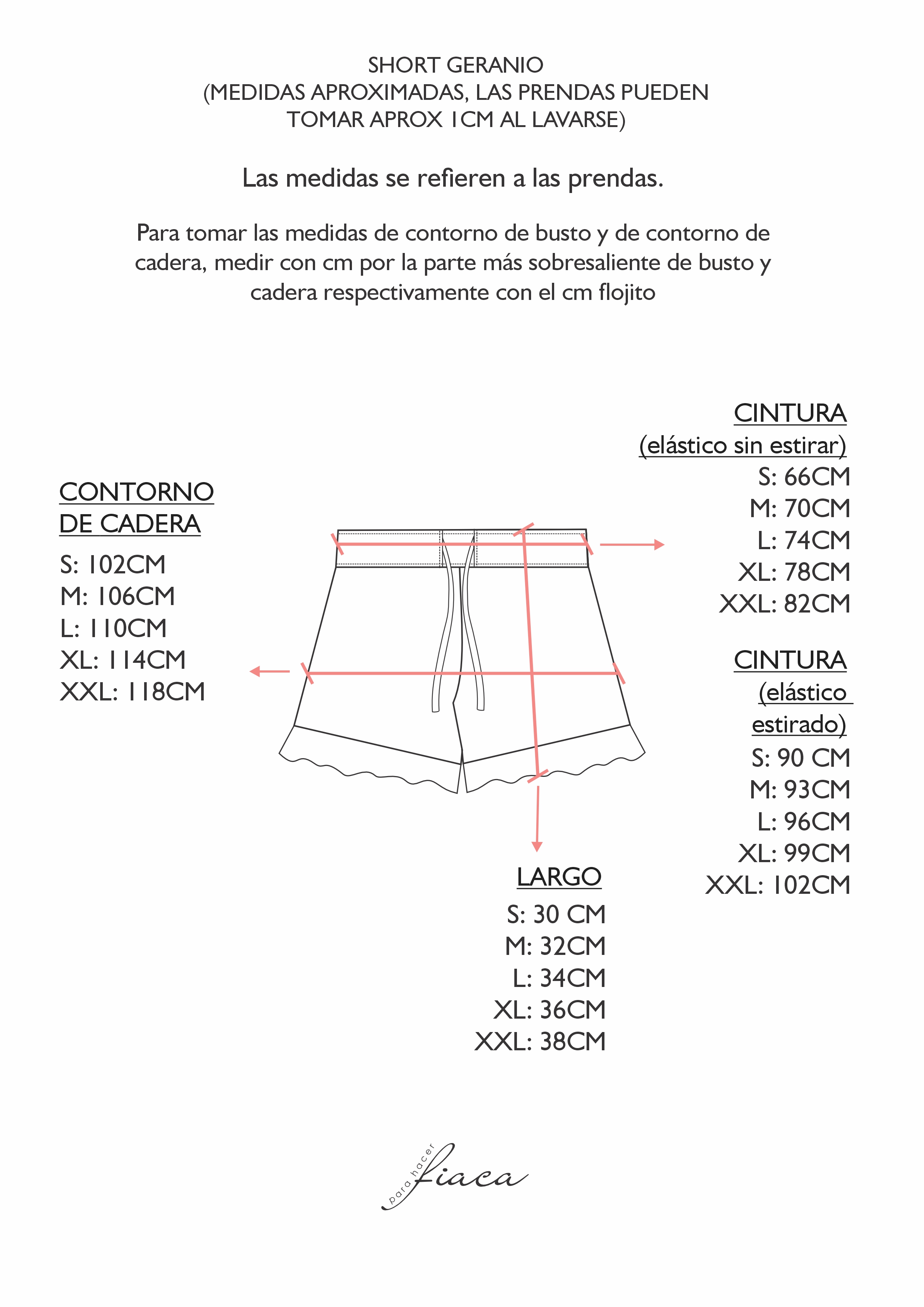 Short de cintura ancha con elástico y cordón de ajuste. Terminación con volados.