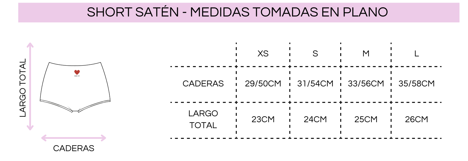 Short pijamero de saten blanco con estampa de corazones. Tiro bajo con elástico.