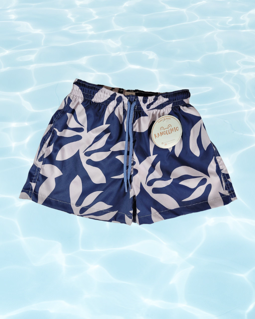 ¡El verano está aquí! Prepárate para las aventuras acuáticas con nuestro Short de Baño para Niños en un lindísimo diseño de hojas azules. Confeccionado para ofrecer comodidad y estilo, este short es ideal para los pequeños que quieren disfrutar al máximo del sol y el agua.