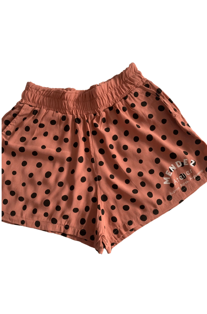 Tela camiseraMolderia propiaEstampado a mano con serigrafiaGUIA DE MEDIDASTalle 1Cintura (elástico sin estirar) 75cmCadera 116cmLargo (incluye cintura) 35cmAncho de pierna 70cm