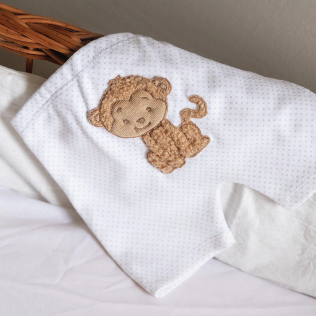 Short confeccionado en interlock 100 % algodón.Con bordado de monito aplicado en parte trasera.