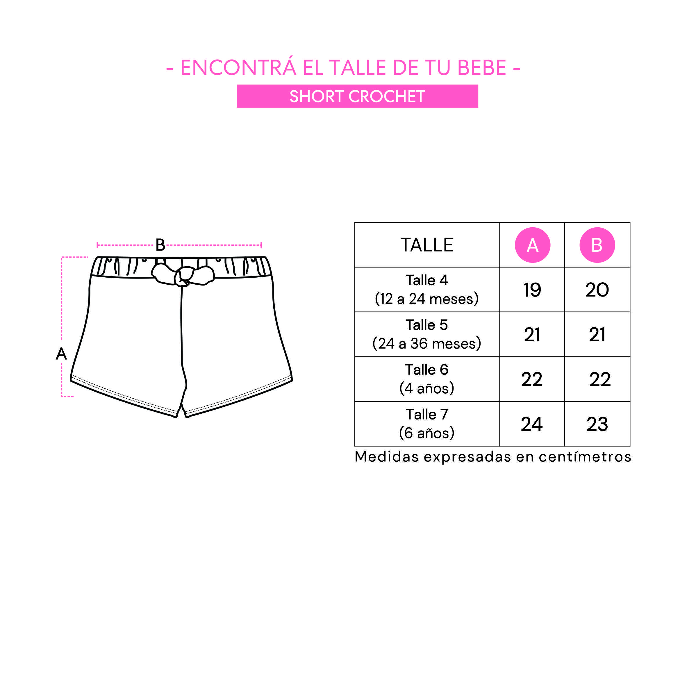 - Guía de talles: Podés utilizarla para comparar con las medidas de alguna prenda de tu bebé. Al tratarse de prendas con procesos manuales puede haber una mínima diferencia entre el producto y la tabla.
