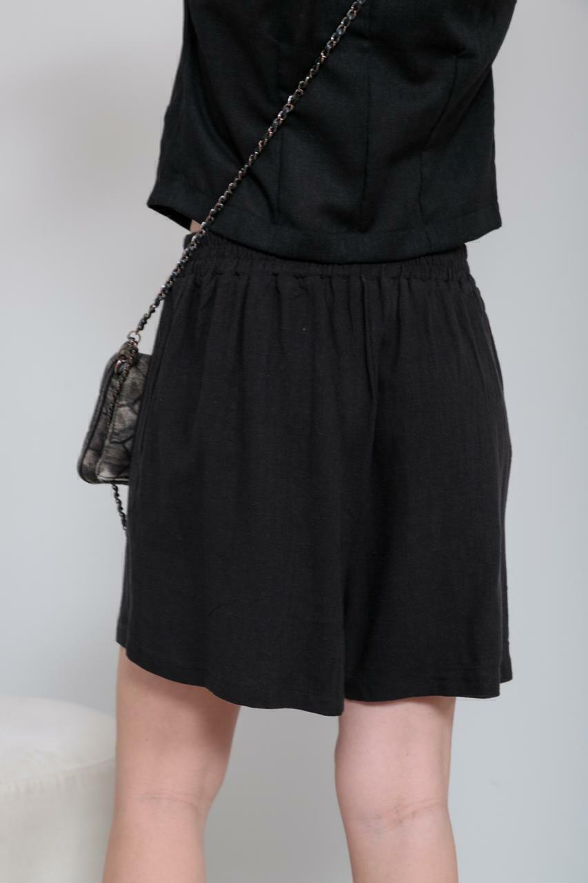 short de lino viscosa con elástico en cintura y bolsillo adelanteúnico talle:cintura: 70 cm elástico sin estirarcadera: 120largo total: 43 cm