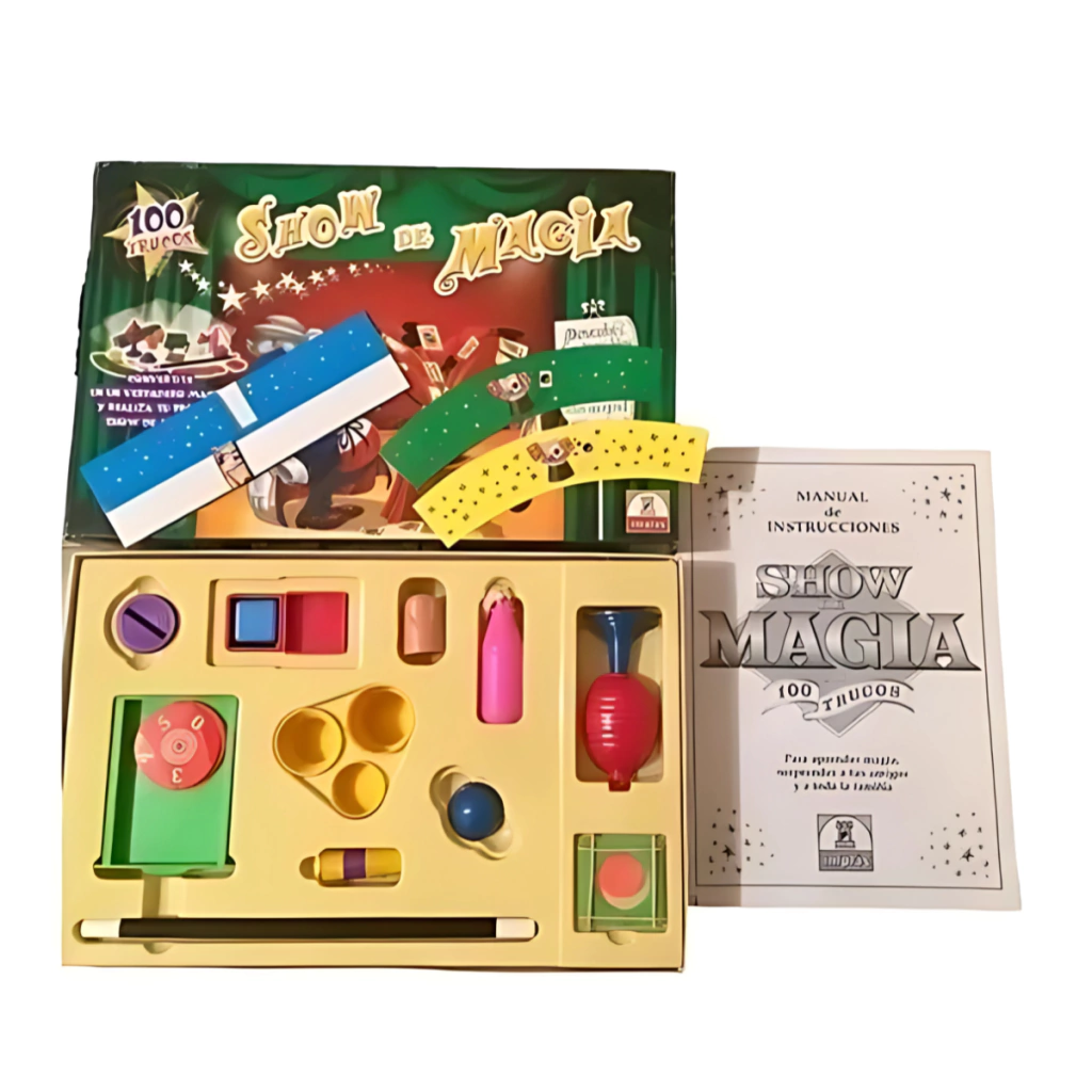 Show de magia 100 trucos implasDescubrí los increíble trucos de magia y sorprende a tus amigos!!Excelente juego de Magia x 100 trucos.Ideal para comenzar y conocer este apasionante arte.Convertite en un verdadero mago y realiza tu propio show de magia.Incluye manual de instrucciones.incluye:1 manual de instrucciones1 varita mágica1 caja mágica con tapa1 copa mágica con una bolita1 moneda mágica1 caja de cristal1 dado grande2 figuras para ilusión óptica1 tubo mágico6 discos con números1 cajoncito mágico1 dedo mágico1 pañuelo mágico1 soga mágica1 botella con bolita1 alcancía mágica1 maceta mágica3 dedales+ 6 años