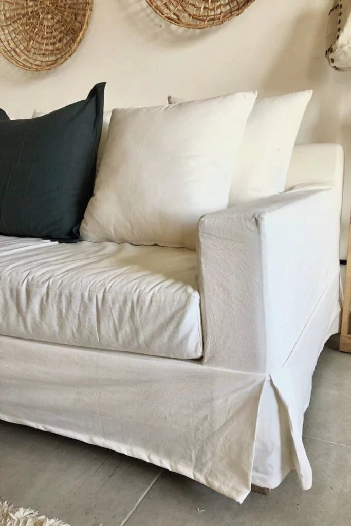 Descubrí el Sillón Mesopotamia, diseñado con una estructura tapizada en lienzo que garantiza durabilidad y estilo. Su funda en tusor off white es lavable en lavarropas con agua fría, facilitando su mantenimiento y manteniendo su frescura a lo largo del tiempo.