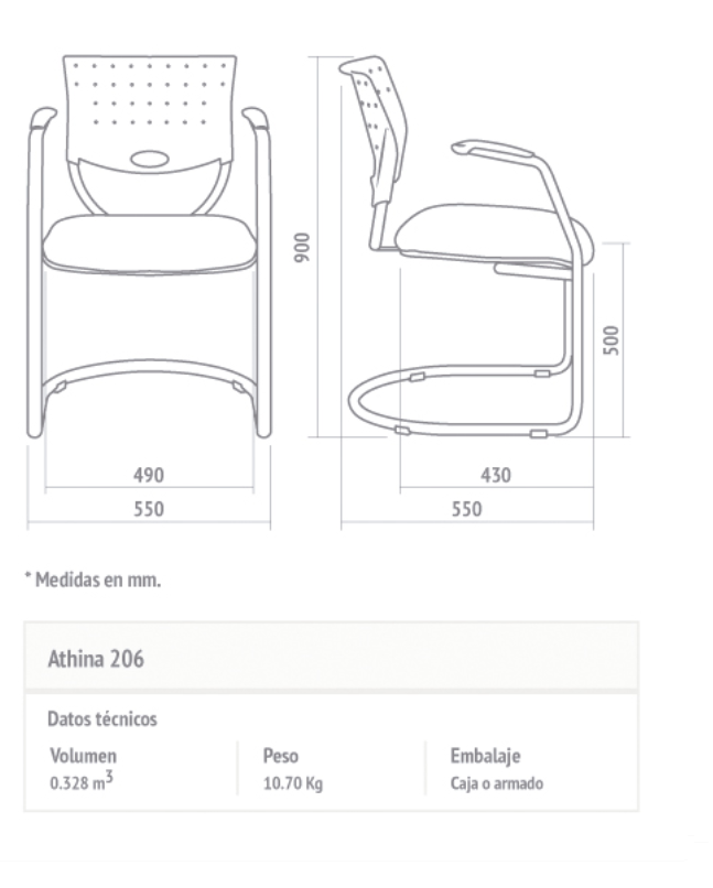 Opcionales: Apoyabrazos / Base cromada / Sistema Basculante / Estructura trineo con brazos cromada / Estructura fija de cuatro patas negra o cromada.