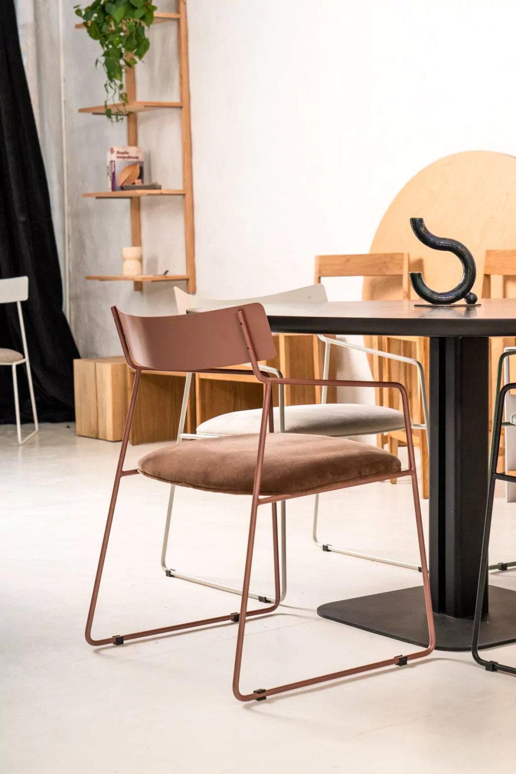 Terminación: Estructura y respaldo: pintura poliéster al horno con resistencia UV cobre rosado microtexturado/liso.