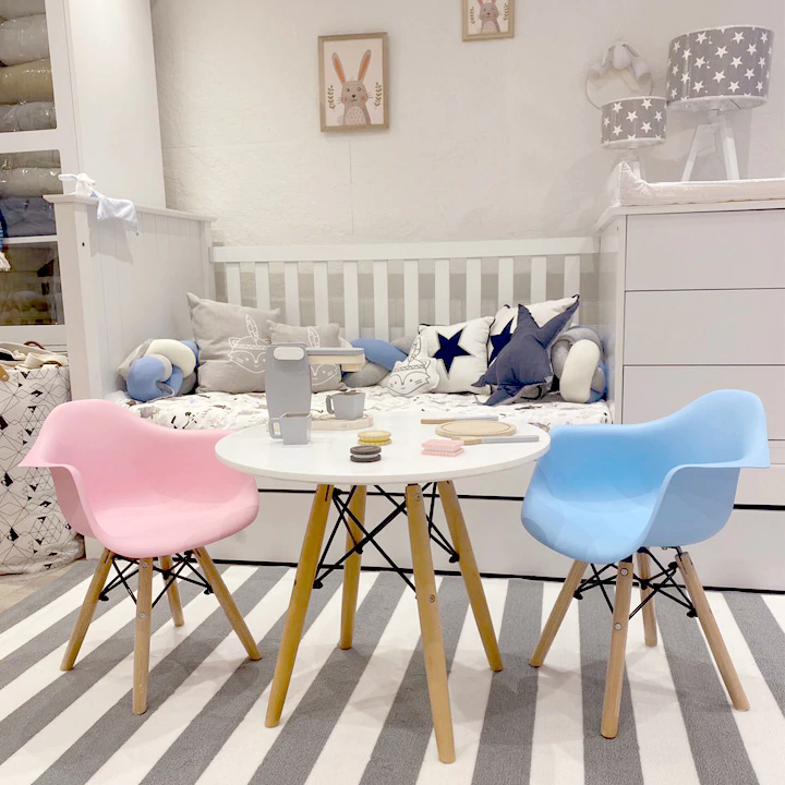 El silloncito Eames es ideal para crear un espacio de juego, ofreciendo un entorno seguro para los peques. Recomendado a partir de los 12 meses en adelante. Silloncito de Diseño de Ray & Charles Eames, su base de madera haya con lustre natural y el plástico ABS libre de ftalatos, garantizando resistencia y seguridad