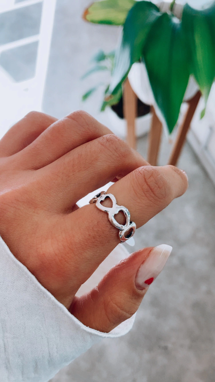 PLATA 925. Anillo de corazones calados.Talles Nros 12 y 15.