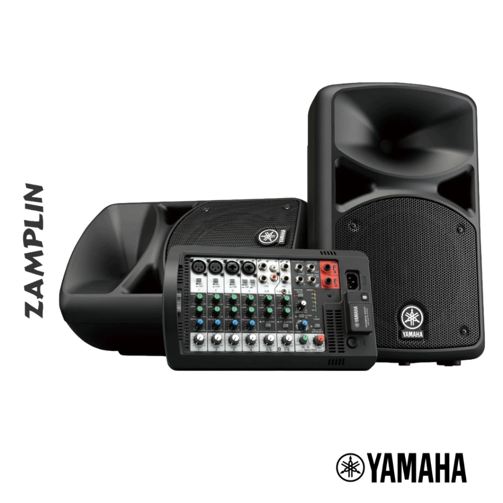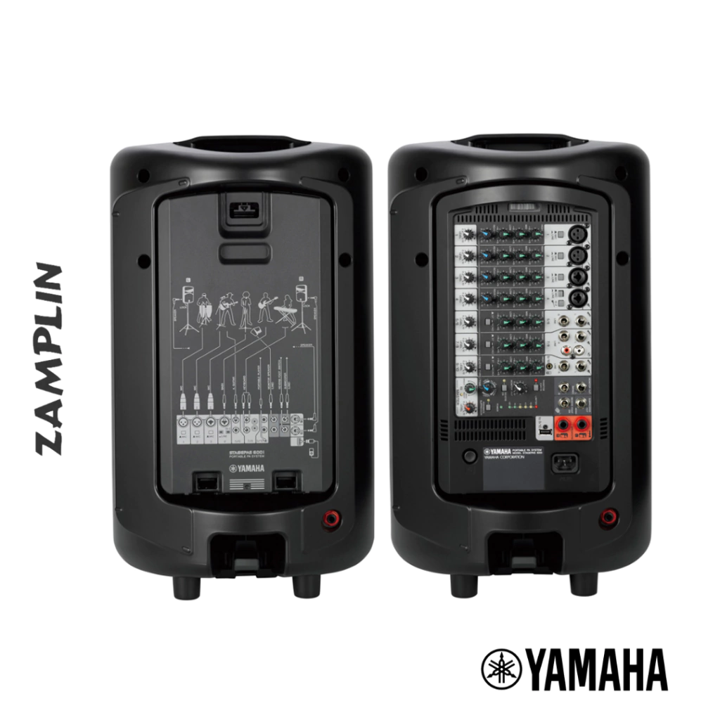 Sistema PA portátil de 600 W con mezclador autoamplificado de 8 canales, dos altavoces de 8 pulgadas, entrada Bluetooth, reverb digital SPX, supresor de realimentación incorporado y ecualización de gran versatilidad.
