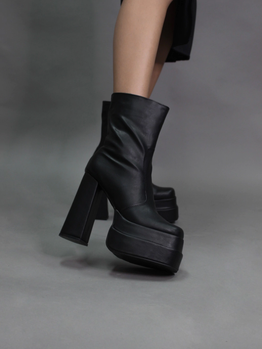 Plataformas con cierre lateral. Alto del taco: 13cm Alto de la plataforma: 7cm Caña: 20cm Material: ecocuero PU