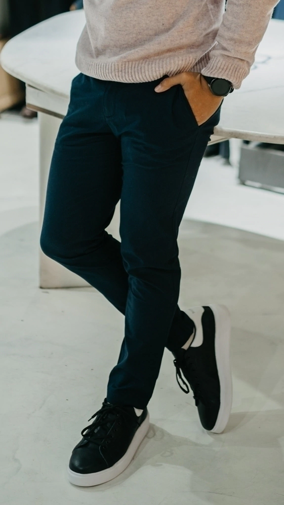 Pantalón chino c/bolsillos delanteros diagonales, botón en cintura y cierre en acceso, bolsillos ojal en trasero con botones. Logo bordado al tono. Slim fit.