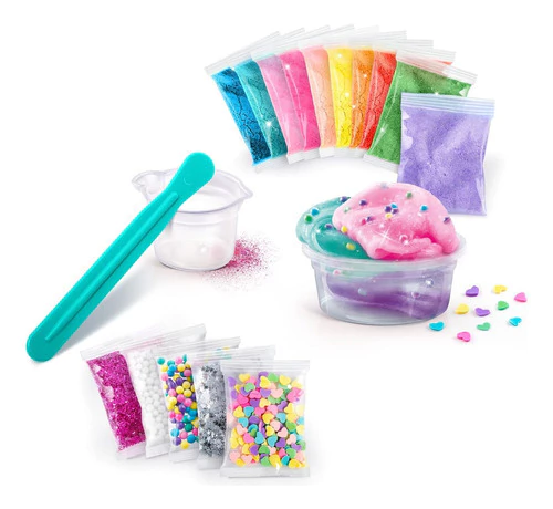 El kit incluye 10 polvos de limo de colores y 5 estilos de decoración para mezclar y combinar.