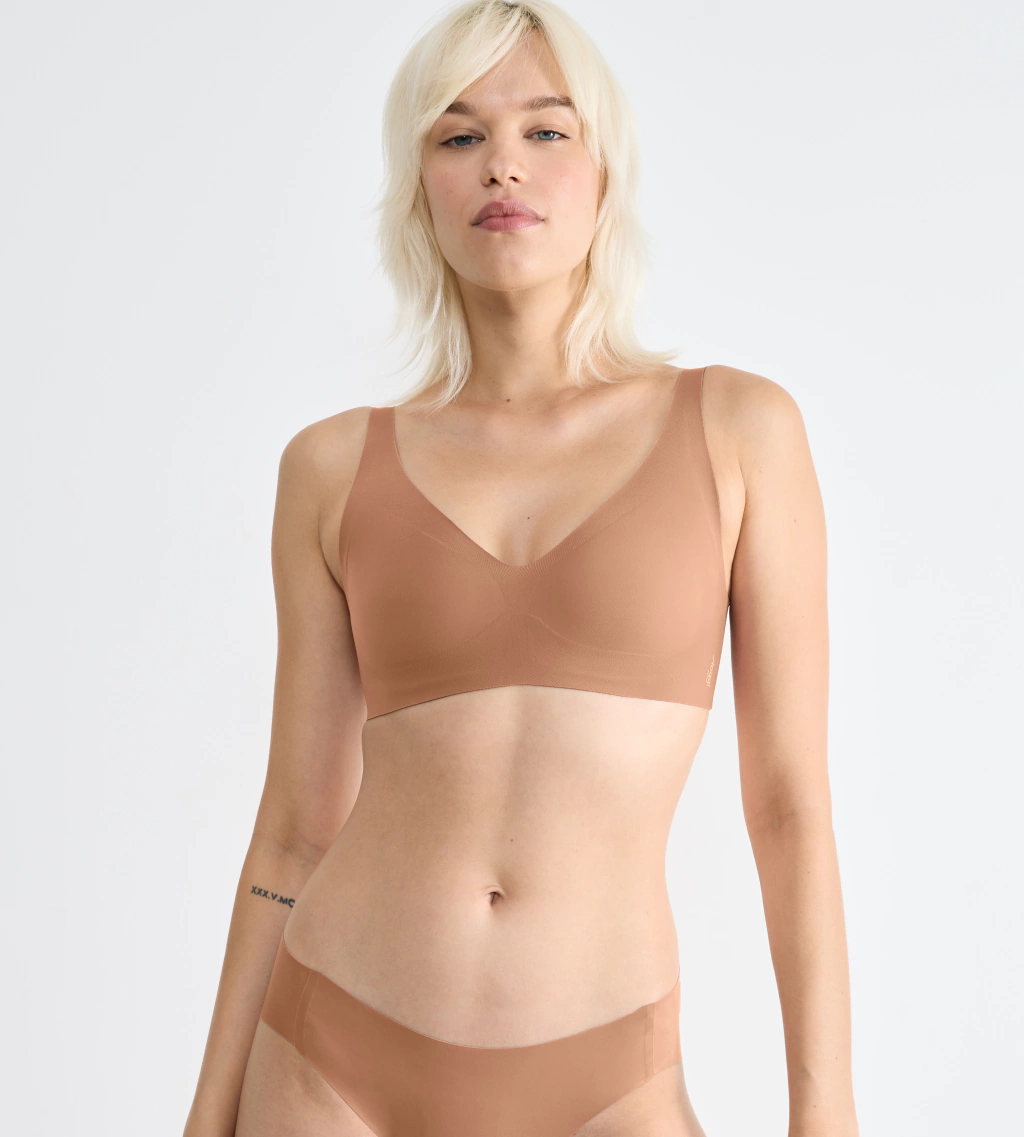 Ten la sensación de ir sin nada con este sujetador suave ZERO Feel, confeccionado en microfibra reciclada ultraligera sin aros, costuras ni etiquetas. La tecnología de unión de puntos proporciona un ajuste sin marcas e invisibilidad total debajo de la ropa.